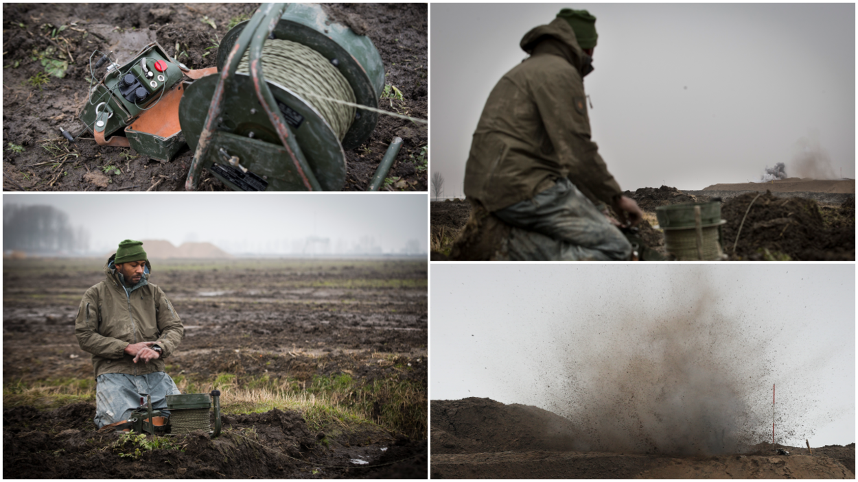 Je kunt er de klok op gelijk zetten in Rijsenhout. Van maandag tot en met vrijdag. Stipt om 12 uur. Geen kerkklok, maar een ‘plof’ van de Explosieven Opruimingsdienst Defensie. De akker bij het dorp in de Haarlemmermeer herbergt veel aandenkens van het schijnvliegveld uit de Tweede Wereldoorlog. En daar hebben de bommenruimers een flinke kluif aan, vertelt EOD-ploegcommandant sergeant-majoor Vincent. “35 bommen op zo’n 80 hectare, dat zijn er echt heel veel.”