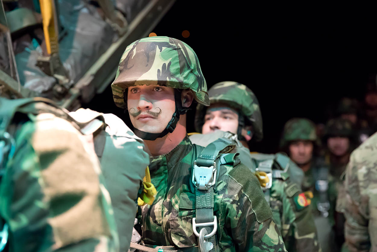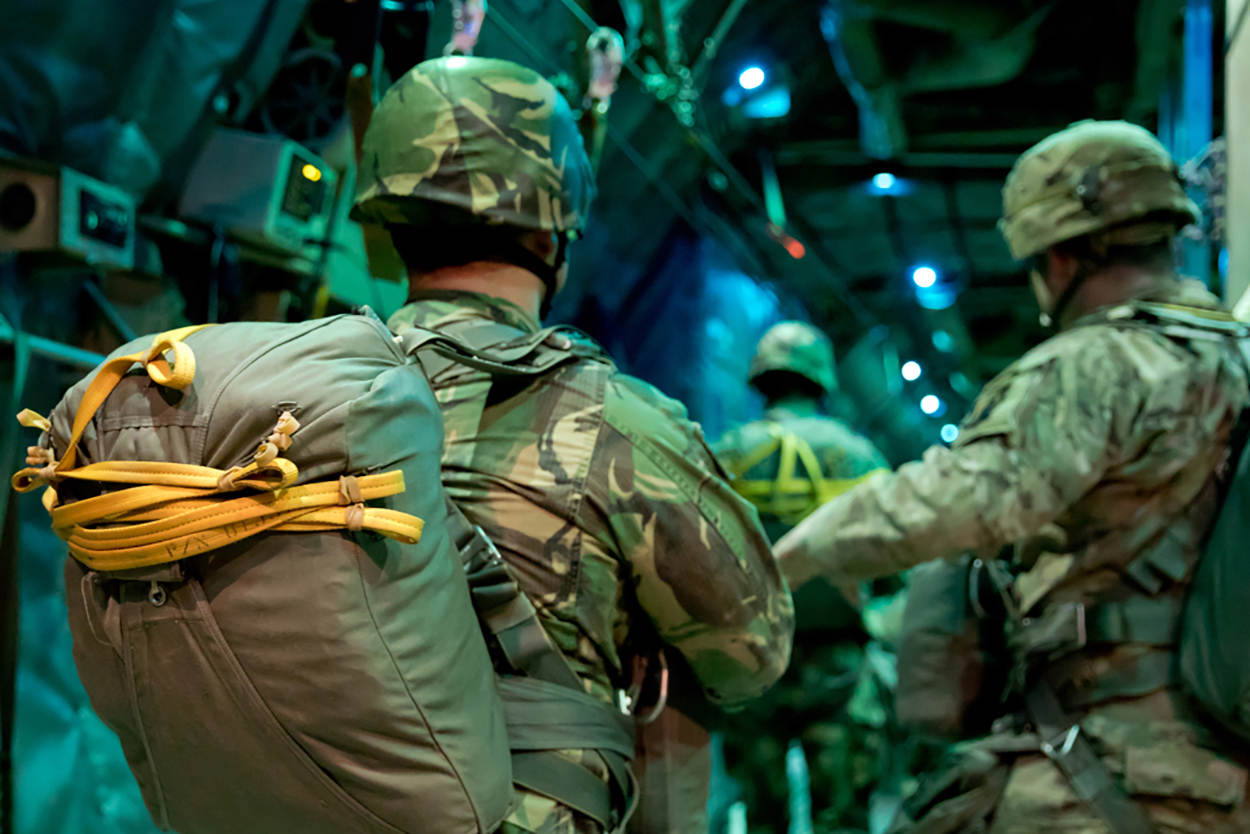 Een blinde sprong in het duister? Dat niet. Springen vanuit een buitenlands vliegtuig, met buitenlandse parachutes, zoiets vergt sterk vertrouwen in elkaars vakmanschap. In Zuid-Portugal bewijzen Nederlandse C-130 Hercules-crews en ondersteunende grondeenheden dat ze met hun buitenlandse collega’s kunnen lezen en schrijven. In meerdere talen.