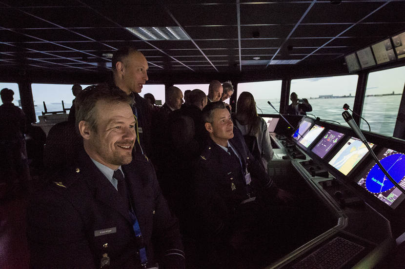Een project dat alle 4 thema's in zich heeft, is de Fast Small Ship Simulator. Hiervoor zijn door Defensie, kennisinstituten en het bedrijfsleven de nieuwste technieken ingebracht om de fysieke belasting voor mens, materieel en milieu terug te dringen. “Defensie, industrie en kenniscentra zijn er nu 3 jaar mee bezig. Voor we alle eisen en wensen op een lijn hebben is al tijd nodig. In mei komt de simulator naar Den Helder om gebruikerservaring op te doen”, zei innovatiemanager Karin van Bodegraven van de afdeling Kennis, Innovatie, Experimenten en Simulatie. “Daarna gaan we weer verder ontwikkelen.”