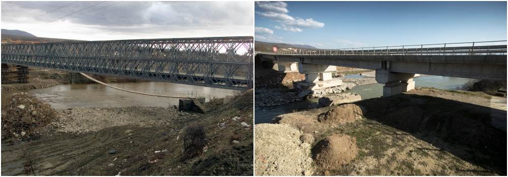 Een eenvoudige hangbrug van staaldraden en pallets ledigde de eerste nood. Daarna bouwden de genisten er een grote, demontabele Mabey-Johnson geniebrug naast. Bier: “Ik ben nooit meer terug geweest, maar ik weet dat onze brug een paar jaar later is vervangen door een permanent, betonnen exemplaar. Een mooi verhaal is dat onze brug in een depot in Bosnië belandde. Daar lag hij toen in 2004 de tsunami in Indonesië toesloeg. Nederland schonk de brug aan het Indonesische leger en nu ligt hij in Atjeh.”