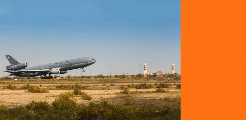 Meer dan 2,6 miljoen pond. Die hoeveelheid brandstof pompte de KDC-10 in 6 weken naar bewapende vliegtuigen van de anti-ISIS-coalitie. Gisteren maakte het Nederlandse tankertoestel zijn laatste vlucht boven Irak en Oost-Syrië. Het ‘vliegende pompstation’ vloog vanaf luchtmachtbasis Al Mubarak in Koeweit 32 Air-to-air-refueling missies van gemiddeld 6 uur. Het gaf daarbij in vastgestelde delen van het luchtruim boven Irak en Oost-Syrië kerosine aan 189 vliegtuigen, voornamelijk Amerikaanse F-15’s.