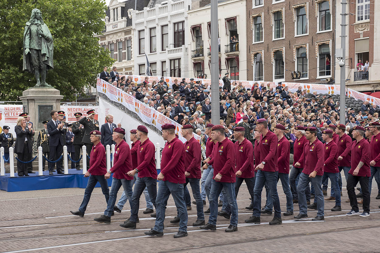 Op Den Haag Centraal komen we bijeen. Oude en jonge bekenden die elkaar op de schouders slaan, omhelzen of ongerust rondkijken of hun maat nog wel zal verschijnen. Het is niet mijn eerste Veteranendag, maar wel de eerste keer dat ik mag meelopen met de Vereniging Veteranen Grenadiers en Jagers (VVGJ), herkenbaar aan de bordeauxrode polo’s. Ik voel me een ‘een beetje-veteraan’ met vele vooral korte uitzendingen achter de rug. Als gemilitariseerd burger, dus niet helemaal echt. “Onzin”, vinden VVGJ-bestuursleden Bart van Doornspeek en Denis Plinsinga. “Iedereen die bij of met ons heeft gediend, hoort erbij. Met onze vereniging proberen we zoveel mogelijk oud-militairen te bereiken. Soms is dat nodig om ze uit een moeilijke situatie te helpen. Wij begrijpen die problemen. Er zijn nog heel wat veteranen die onbereikbaar zijn om wat voor reden dan ook. Die mannen en vrouwen willen we laten zien dat we er voor hun zijn: vinden, binden en boeien is ons motto.”