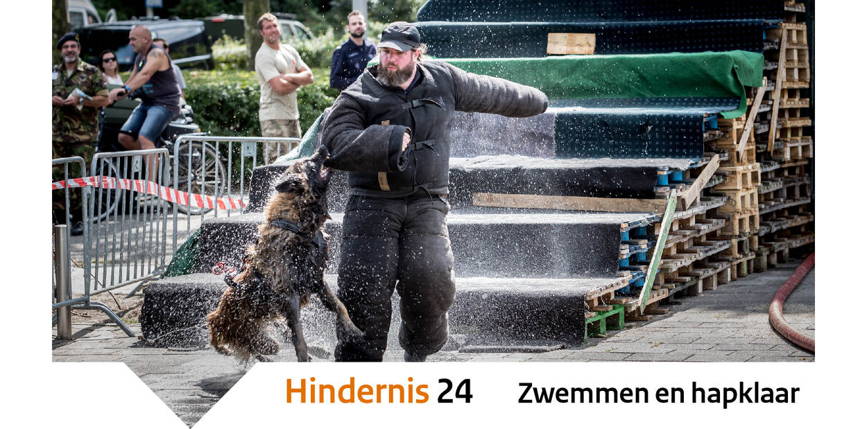 Er waren 24 hindernissen, de één makkelijker dan de andere. Scroll naar beneden en leer van adjudant Willy Stevens, vakcoördinator hondengeleiding en organisator van de biatlon, meer over de meest uitdagende obstakels.