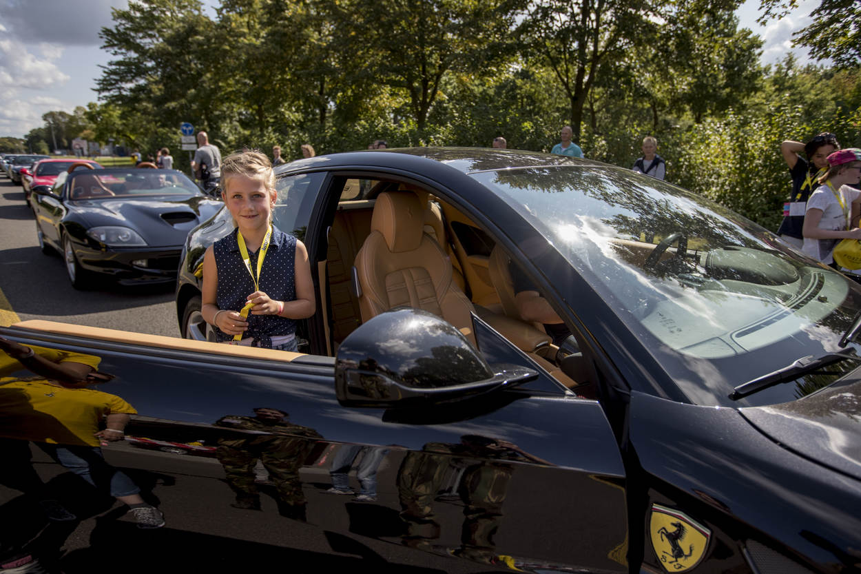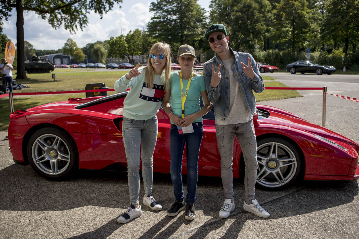 De 11-jarige Dominique hoopt dat ze zo in een blauwe Ferrari mag. Maar eerst snel op de foto voor het rode exemplaar, want ach: “Die is ook best mooi.” Naast haar staat haar vlogidool Dylan Haegens en zijn vriendin Marit Brugman, die geduldig poseren met ieder wie wil.