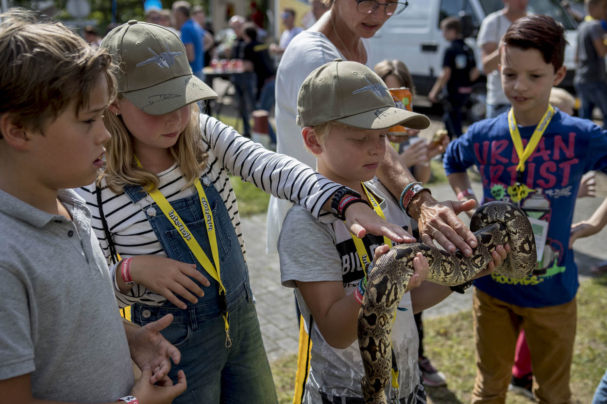 Met een handtekening van vlogger Dylan Haegens op de pet en een Ferraririt maar net achter de rug, dient het volgende avontuur zich aan: een slang aaien of zelfs vastpakken.