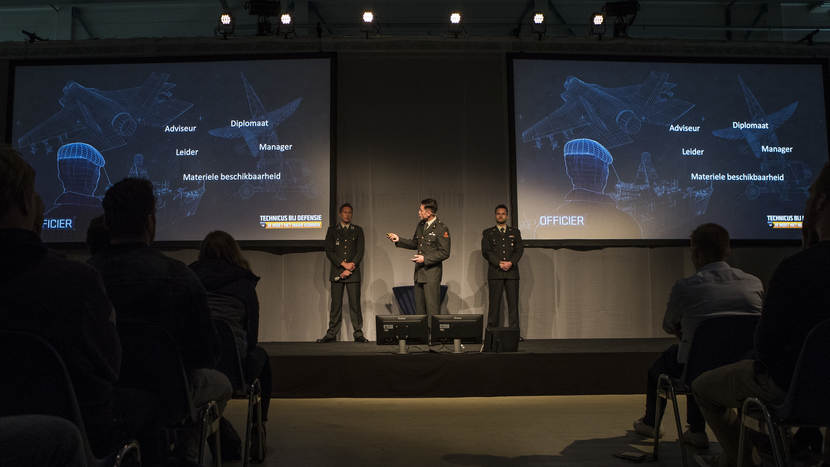 Wat er allemaal zo bijzonder is aan de werkgever Defensie, deden tal van sprekers uit de doeken. Werken met zeer moderne wapensystemen als de F-35, de Boxer en de radarsystemen op de schepen van de Koninklijke Marine.