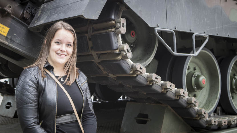 “Ik heb de Koninklijke Militaire Academie altijd wel in gedachte gehouden. Nee, dat heeft niets met een familietraditie te maken. Na mijn studie heb ik nog een jaar aan de TU gestudeerd, maar dat was niet mijn ding. Geef mij maar de praktijk. Voor welk krijgsmachtdeel ik zou kiezen na de uitleg van vandaag? Dat maakt me niet zoveel uit, als ik maar met voertuigen en wapensystemen aan de gang mag. Want ja, ik blijf een engineer.”