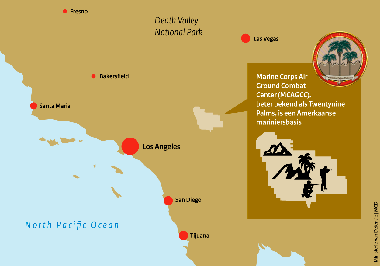 Mariniers zijn meer dan bekend met zanderige gebieden. De afgelopen decennia was de lichte infanterie (mariniers behoren tot de lichte infanterie, red.) bij herhaling actief in Afghanistan en Irak. Niet zo vreemd dat het rotsachtige, onherbergzame oefenterrein Twentynine Palms voor hen min of meer vertrouwd aanvoelt. Op het hier gevestigde Marine Corps Air Ground Combat Center beoefenen ze samen met Amerikaanse collega’s hoe ze tegenstanders onder druk moeten houden én uitschakelen.