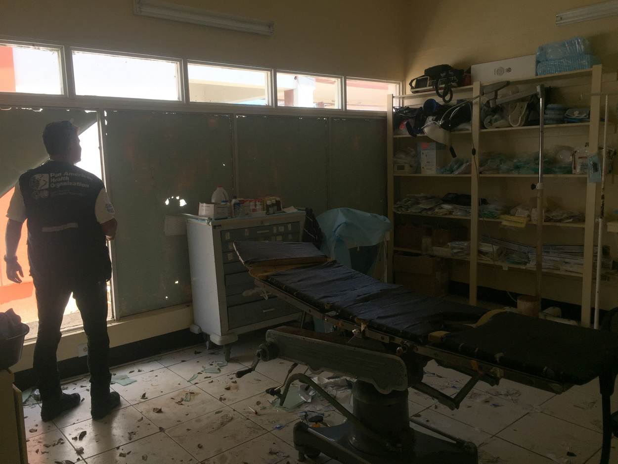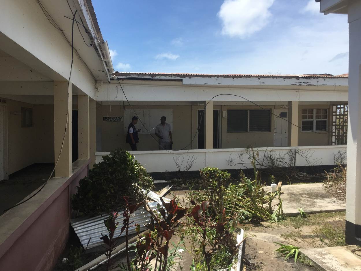 Na orkaan Irma is het Hanna Thomas Hospital op het Caribische eiland Barbuda flink beschadigd.