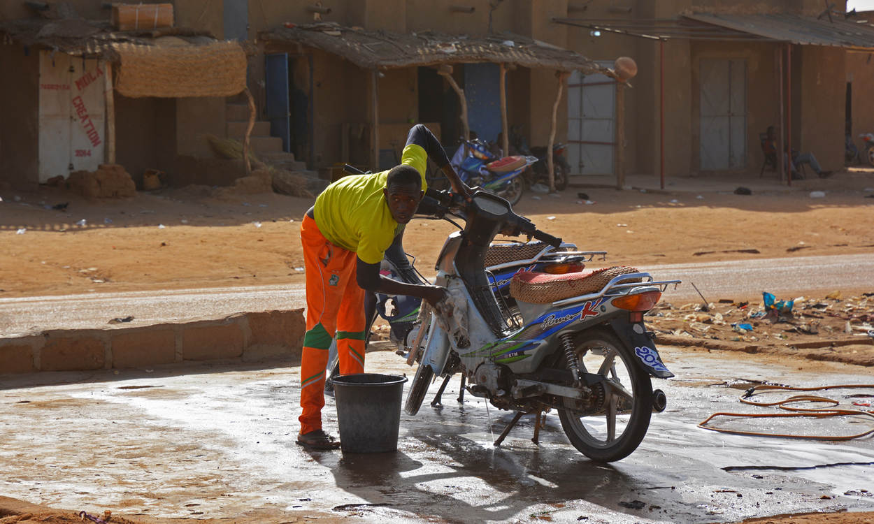 Het noorden van Mali is er de afgelopen jaren niet veiliger op geworden, anders zouden er ook geen Nederlandse militairen naartoe zijn gestuurd. Dat besefte onze gast overigens ook, hij hield het kort en is inmiddels alweer veilig terug in Bamako. Zijn wandeling richting de klaarstaande brommer was desondanks best even jaloersmakend. Zonnebril op, sjaal over het hoofd en de stad in. Het mooie Mali tegemoet.