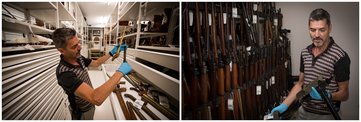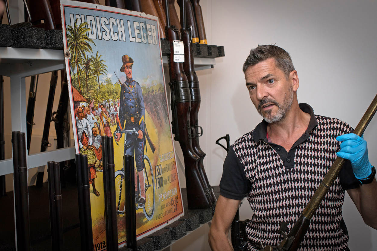 De ruimte naast de foto-opslag herbergt vuurwapens, daarnaast een kamer met schilderijen, krissen en wat verder nog gedoneerd is. Wekelijks is Van den Akker in dit ondergrondse depot te vinden. Want hoewel de vaste expositie in het museum slechts eens per tien jaar verandert, houden de vele tijdelijke tentoonstellingen de conservator behoorlijk bezig.