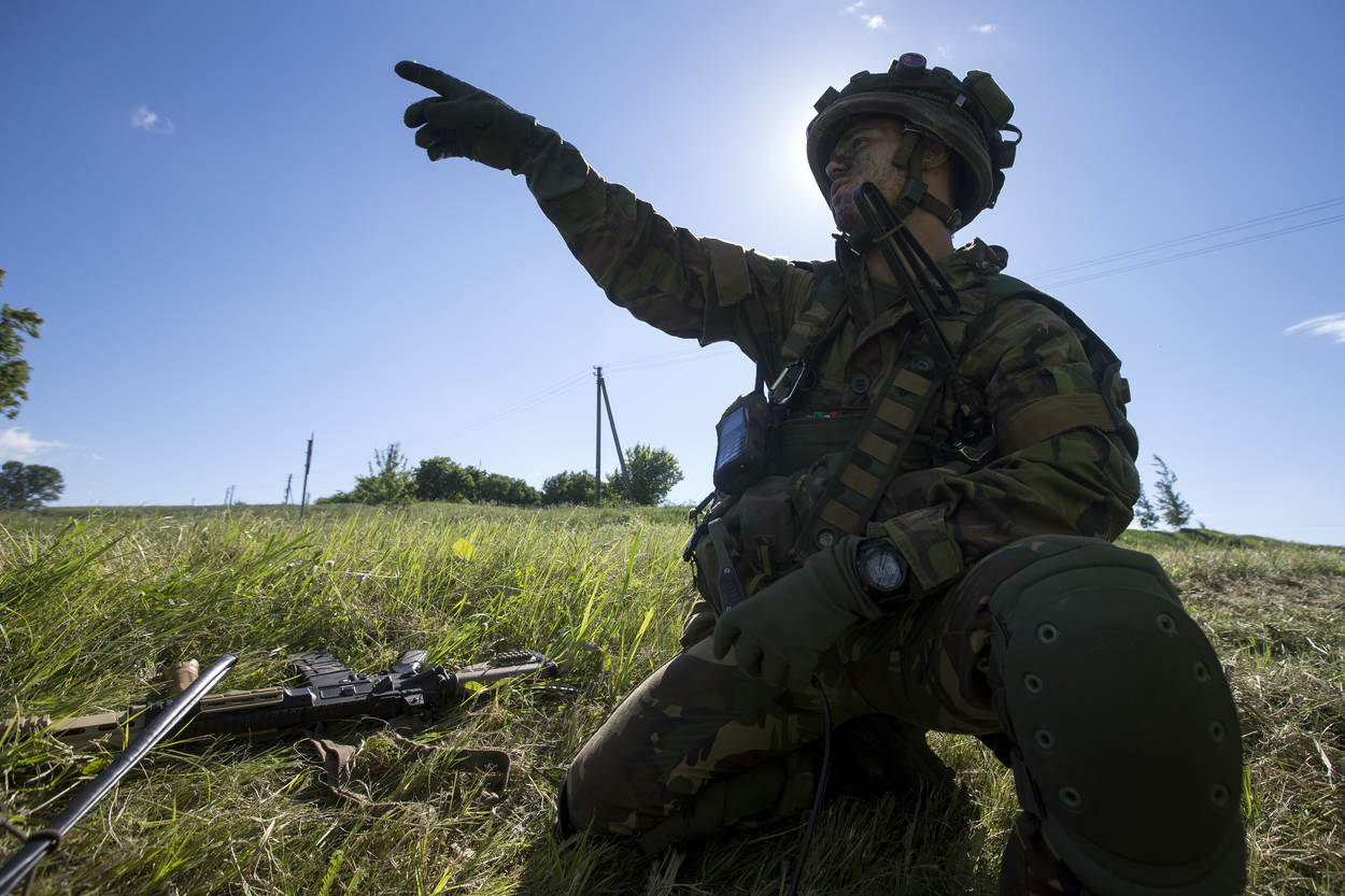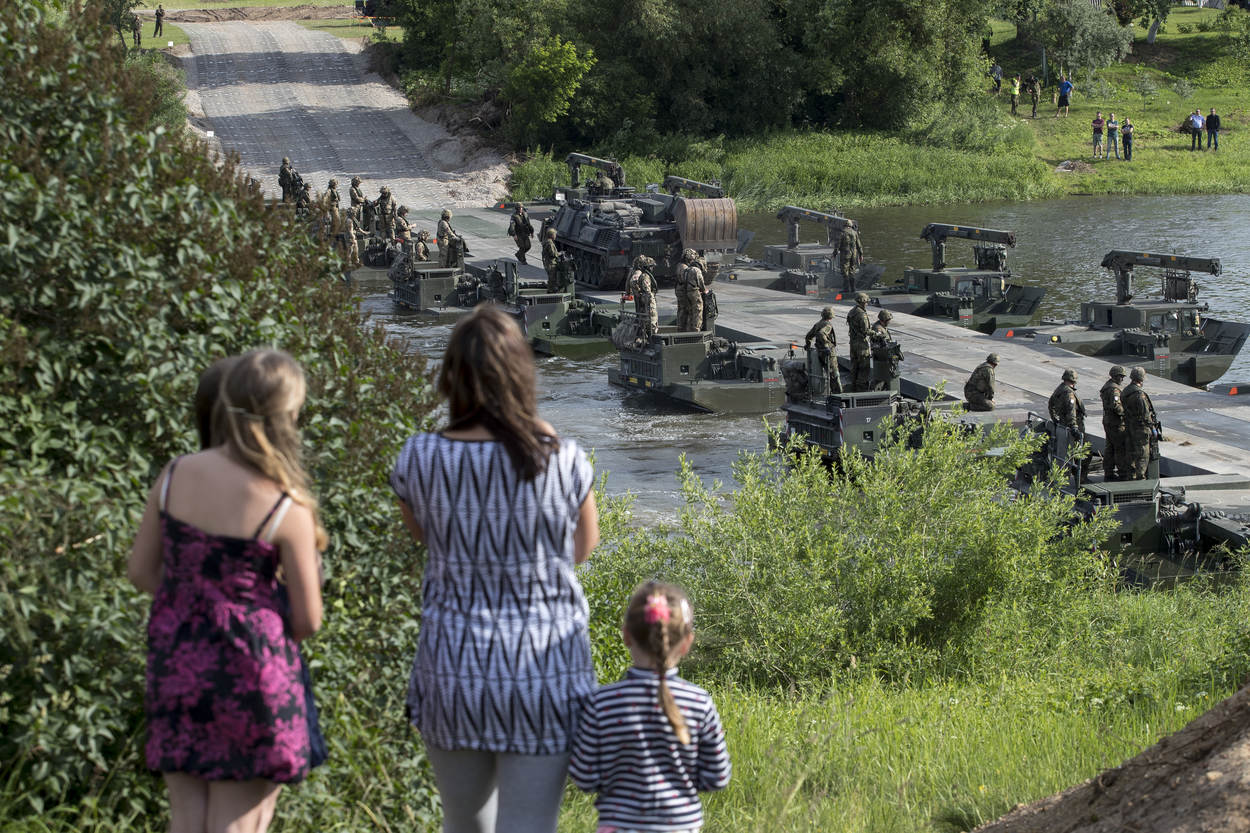 Defensiefotograaf sergeant-majoor Gerben van Es is genomineerd voor de prestigieuze fotoprijs de Zilveren Camera. Van Es maakte het bovenstaande beeld op 20 juni vorig jaar in de Litouwse stad Jonava, tijdens de NAVO-oefening Iron Wolf. Op de foto zien we de lokale bevolking, die aandachtig naar de oefening kijkt.