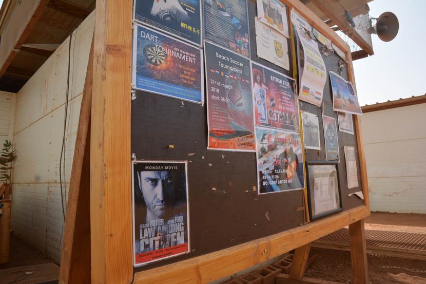 Om maar aan te geven: bij militaire missies horen ook saaie momenten. Buiten en binnen de poort. Ter vermaak wordt op Kamp Castor gesport, gekaart, gedart en gepingpongd.