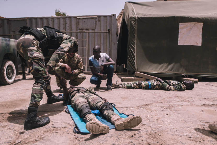 Schiet- en medische lessen stonden op het programma, waarin de Senegalezen vooral leren om volgens een strak protocol te werken.
