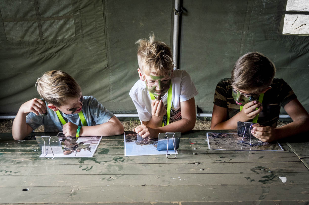 Van camoufleren, spoorzoeken en knopen leggen tot een tent opzetten, de hindernisbaan over rennen en minitank rijden. De ideale manier om kinderen kennis laten te laten maken met het militaire leven. “Je kunt met ze langs een tank lopen, maar als ze zelf iets mogen doen blijft het veel meer hangen”, vertelt moeder Annemarie.