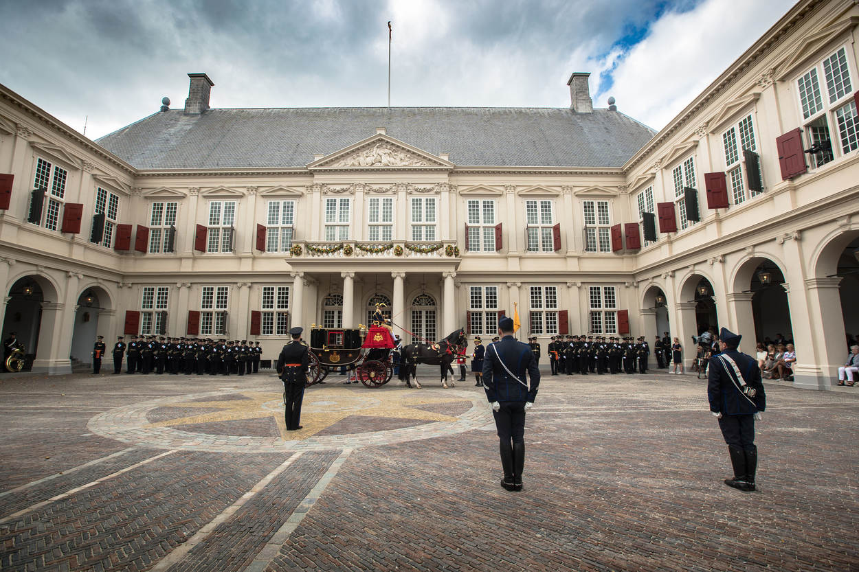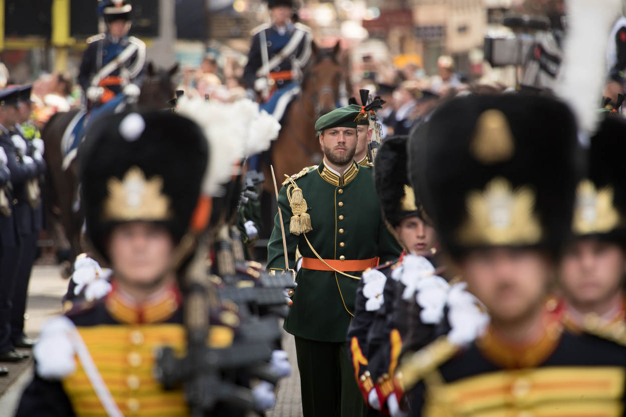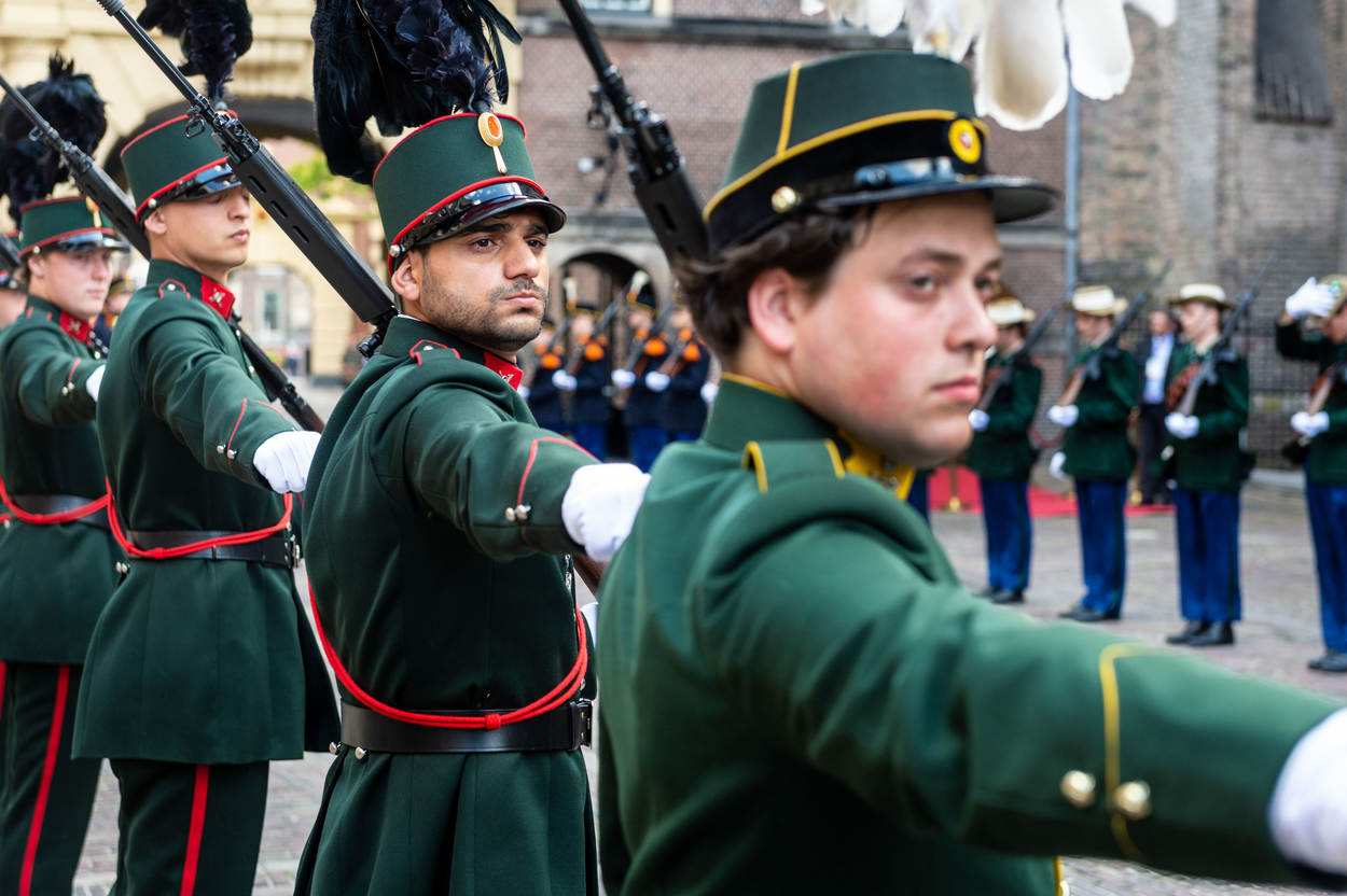 Defensie heeft de zonovergoten Prinsjesdag in Den Haag weer groots ondersteund met de inzet van circa 1.500 militairen voor ceremoniële taken. Van minuutschoten en de muziekkapel tot een vaandelwacht. Verschillende defensiefotografen omzoomden het parcours om het tafereel vast te leggen.
