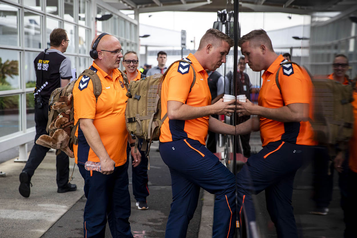 De atleten en de staf worden opgewacht door de Nederlandse defensieattaché in Australië, luitenant-kolonel Elmar Hermans en zijn partner Simone Steendijk. Ook supervrijwilliger Hannie Page en Invictus-mascotte Cobber zijn erbij. De sporters hebben in alle opzichten een lange weg gekend naar de 4e editie van de Invictus Games.