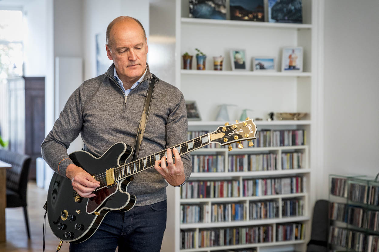 Geerts is een groot muziekliefhebber; hij draait niet alleen veel muziek maar speelt ook zelf gitaar.