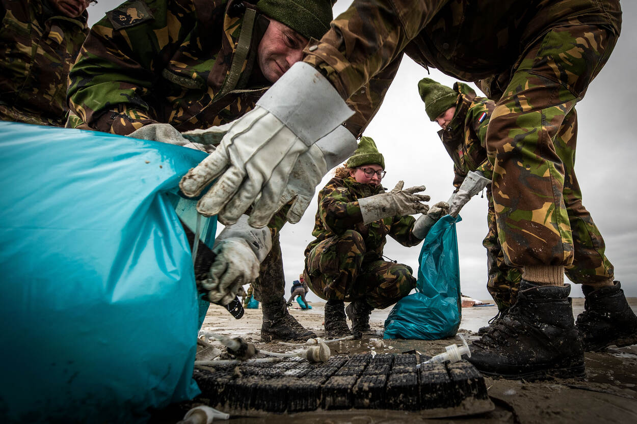 De hulptroepen van Defensie nemen de moeilijk bereikbare oostkant van Schiermonnikoog voor hun rekening. Met militaire voertuigen worden de mannen en vrouwen op verschillende punten langs het strand afgezet. Ter plekke is de schok groot. Soldaat 1 Mirande: “Zóveel rommel had ik echt niet verwacht. We moeten aan de slag, dat is duidelijk. Ik ben blij dat ik mijn steentje kan bijdragen.”