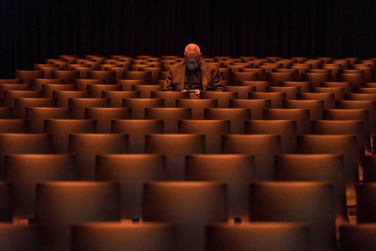 Alleen maar niet alleen. Deze collega wacht in een conferentiezaal op de dingen die gaan gebeuren en doodt de tijd met het bijwerken van berichten en e-mail op zijn smartphone. De foto werd gemaakt in de marge van een symposium over de militaire gezondheidszorg. Foto: John van Helvert.