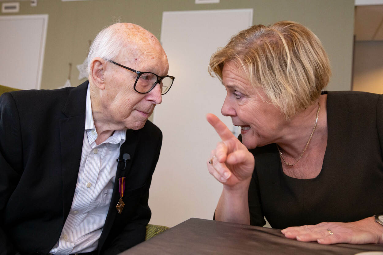 Minister Ank Bijleveld reisde op 8 januari naar Terneuzen in Zeeland om hoogstpersoonlijk het Mobilisatie Oorlogskruis uit te reiken aan de inmiddels 99-jarige veteraan Adriaan Dieleman. Hij kwam in actie tijdens de mobilisatie en meidagen van 1940. Na de capitulatie werd hij gedemobiliseerd, maar dat was niet het einde van zijn militaire loopbaan. Na de bevrijding werd hij ingezet voor de bewaking van Duitse krijgsgevangenen in België én trad op als tolk voor de Canadezen. Foto: Louis Meulstee.