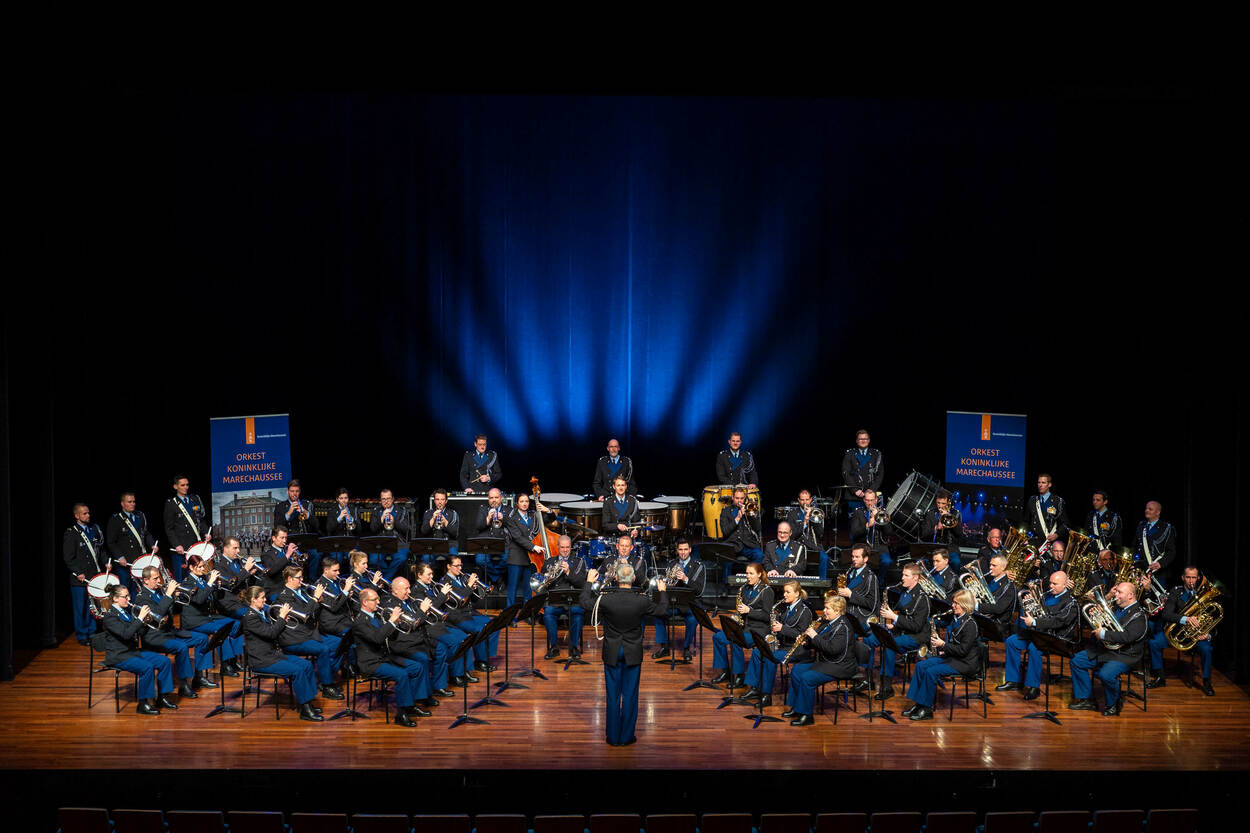 200 jaar, zo lang kennen we in Nederland al militaire muziek. De militaire orkesten leveren bijna dagelijks een muzikale topprestatie. Fotograaf Jarno Kraayvanger maakte deze prachtige foto van het Orkest Koninklijke Marechaussee in de zogenoemde concertopstelling.