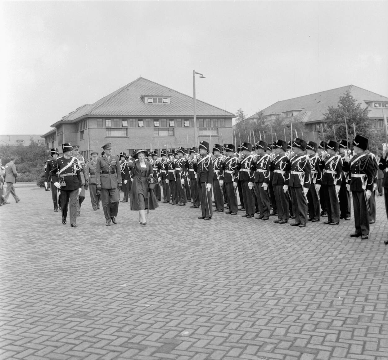 Prinses Beatrix bezoekt in juli 1956 het Depot van de Koninklijke Marechaussee in Apeldoorn.