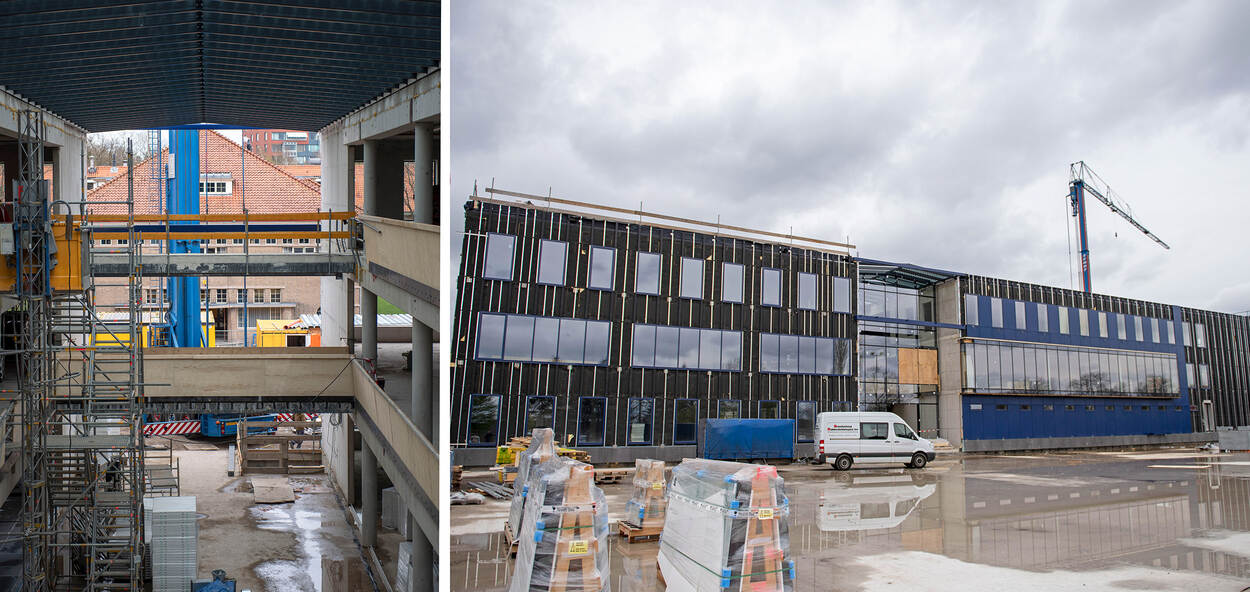 Het nieuwe transparante lesgebouw. Vanuit de centrale hal kijk je de geschiedenis in. (Foto: Matthijs Remmers)