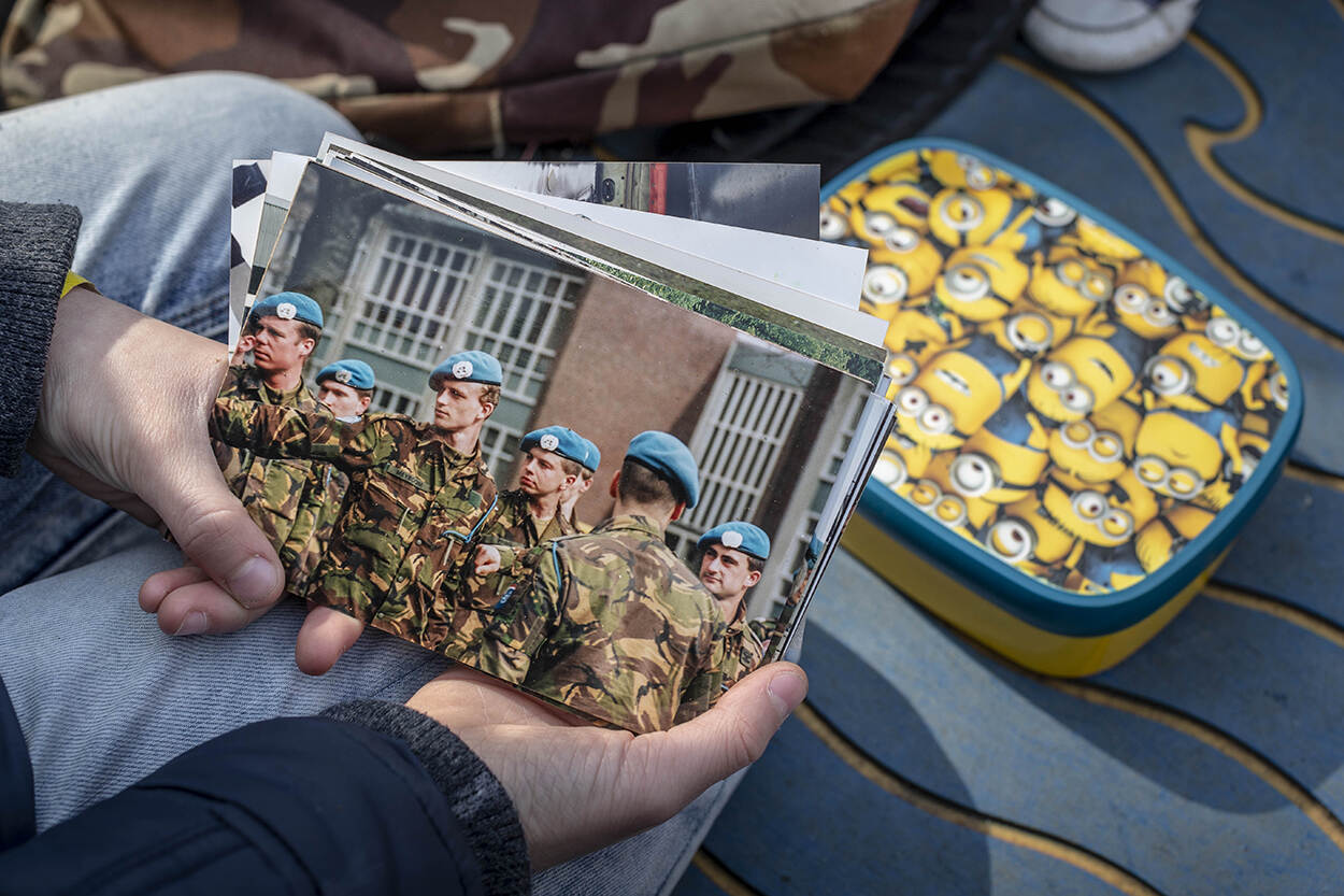 Geboeid hangen ze aan zijn lippen, de leerlingen van groep 8 van de Haagse basisschool Zorgvliet. En natuurlijk willen ze allemaal even die blauwe VN-helm op van Libanon-veteraan Frank Kroon. Of 'ie toen ook een Iphone had om naar huis te bellen? Schaterend gelach als ze het antwoord horen: “Nee, contact met thuis ging via brieven en cassettebandjes...” En terwijl de miniatuurtreinen van Madurodam langs tuffen, begint de voor even weer 19-jarige sergeant Frank aan een nieuw verhaal over zijn spannende nachtelijke patrouille in een vreemd, ver land. In de miniatuurstad werd met de ‘Verhalendag’ het startsein gegeven voor verschillende projecten in aanloop naar de Nationale Kinderherdenking 4 mei.