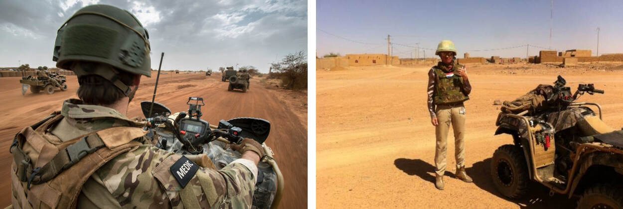 "Ik heb mij altijd welkom op Kamp Castor gevoeld en genoten van iedereens inzet. Ik werkte samen met jongens van 21 die aan de voertuigen sleutelden, Minusma stafleden uit tig landen met wie ik mijn ideeën en analyses deelde en de lokale bevolking. Heel afwisselend. Aan het militaire leven heb ik mij zo goed mogelijk aangepast en veel bijgeleerd. Naast meedraaien in alle planningsprocessen weet ik nu ook hoe belangrijk het is om je coördinaten op orde te hebben, je scherfvest aan te houden tijdens patrouilles en geen rommel te maken in de Bushmaster (pantserwielvoertuig, red.). Ook belangrijk: onderweg niet te vaak hoeven plassen en niet te lang praten tijdens bevelsuitgiftes en hot wash ups (overleg direct na patrouilles om kort en krachtig te evalueren, red.)."