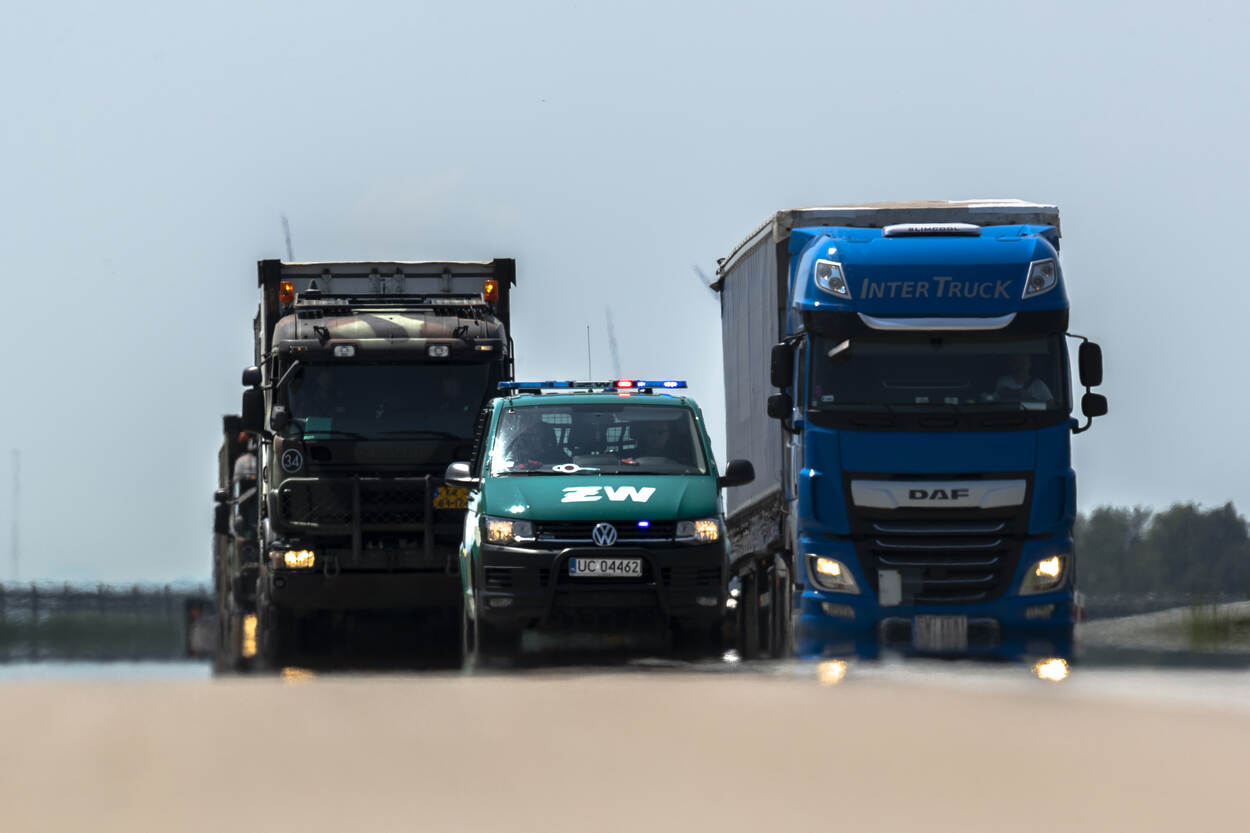 In Polen wordt contact gelegd met de lokale militaire politie. Na een uitvoerige check van al het papierwerk (voertuiggegevens, lading en route) vervolgen de militairen hun weg.