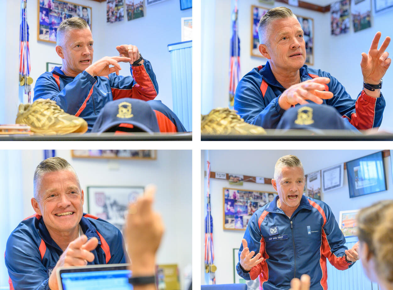 Rik van Trigt ademt triatlon. De oud-topsporter, trainingsdeskundige, teammanager van het nationaal militair triatlonteam en stafofficier bij de lichamelijk oefening en sportorganisatie van de landmacht zette ooit de 9e triatlontijd van de wereld neer. Hij ziet in topsport veel parallellen met het werk van militairen. “Kracht, uithoudingsvermogen en coördinatie. Alles zit erin. Als je de verkeerde dingen doet, word je afgestraft.”