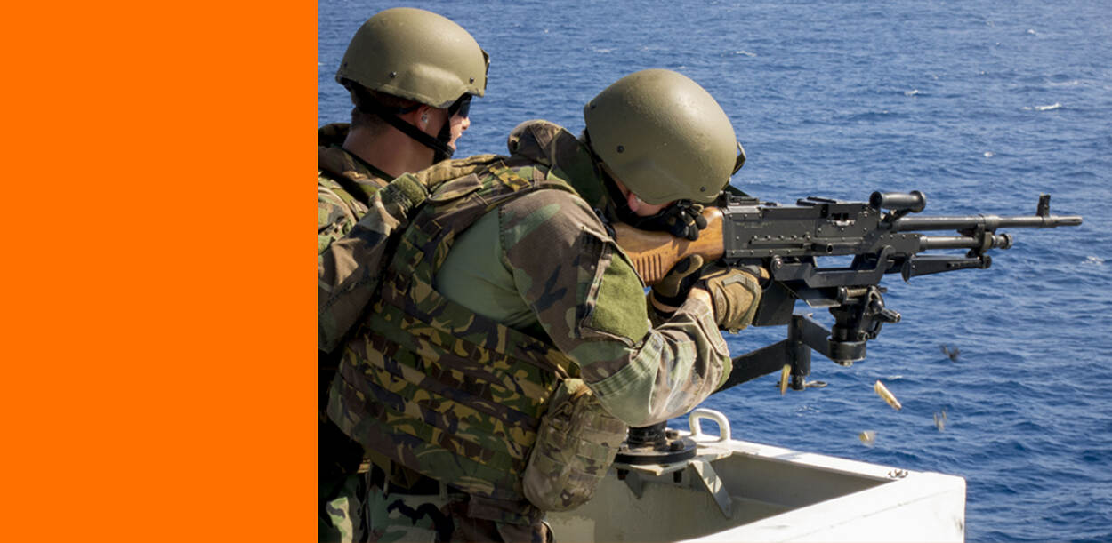 De heavy load carrier voer rustig over de oceaan toen de piraten opdoken. 6 skiffs (kleine bootjes) met ieder 4 tot 6 mannen zwermden rond het 150 meter lange transportschip. De piraten hadden er alleen niet op gerekend dat er een VPD aan boord zat.