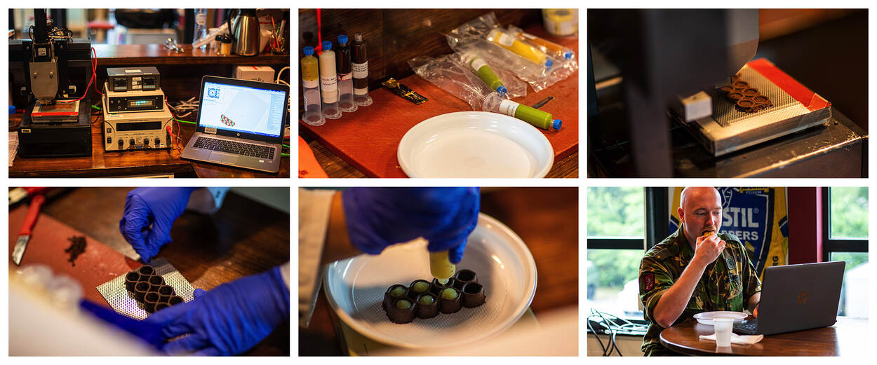 Is er iets mis met het huidige rantsoen? Niet volgens Van Reedt Dortland. “Het bevat alles wat een militair nodig heeft, maar het rantsoen wordt bijna nooit helemaal opgegeten en dan mis je voedingstoffen. En met de discipline om vitaminepillen te slikken is het bij Defensie slecht gesteld.” Een gepersonaliseerde 3D-geprinte reep kan volgens haar een mooi alternatief zijn. “Een printer produceert er een in ongeveer 15 minuten. Die wordt ter plekke afgebakken, ruikt vers en smaakt lekker.”