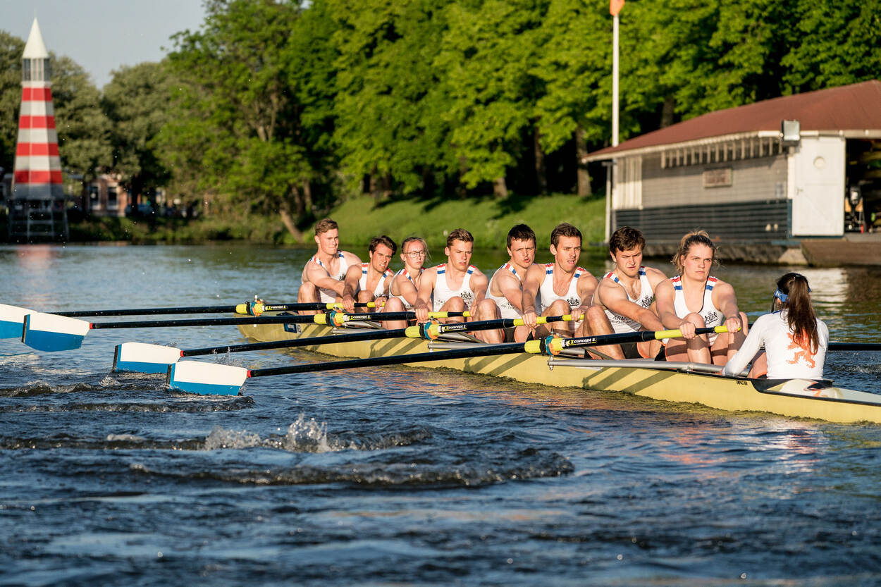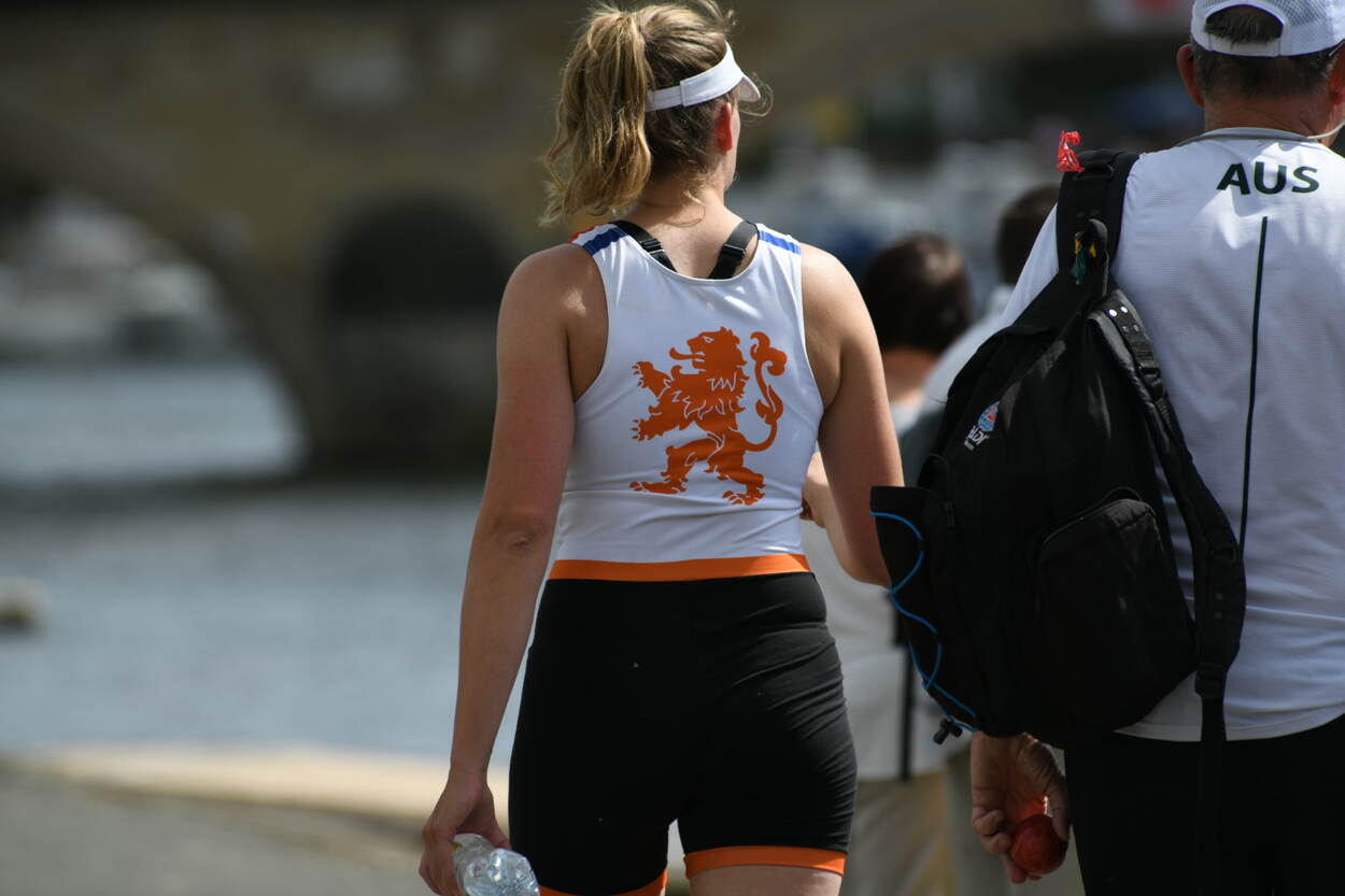 Coach Tess Horlings zet in haar peptalk het team nogmaals op scherp: “Koppie erbij houden! We zijn een jong team, maar zeker niet kansloos. Ook al komen we achter te liggen, blijf technisch goed roeien. Succes!”