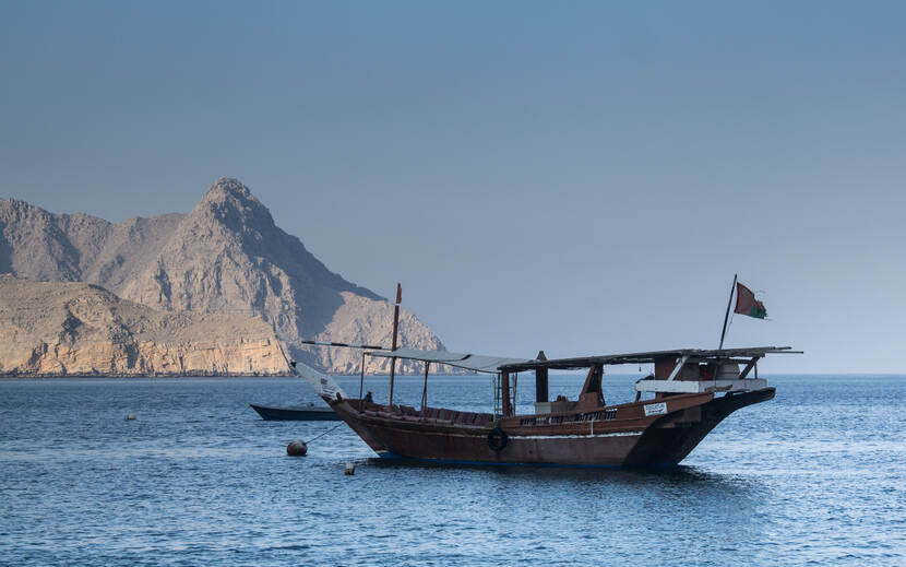 Op z’n smalst is de straat van Hormuz nog geen 40 kilometer breed. Foto: Rita Willaert (Flickr)