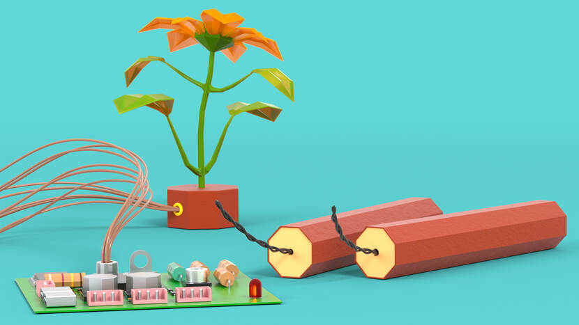 2 groepen van in totaal zo’n 20 studenten gingen voor Defensie verder waar professor Strano was gestopt. Zij moesten heel wat problemen het hoofd bieden. Welke bloem- en plantensoorten gebruik je bijvoorbeeld voor die explosievendetectie en hoe kun je het groen met elkaar laten communiceren?