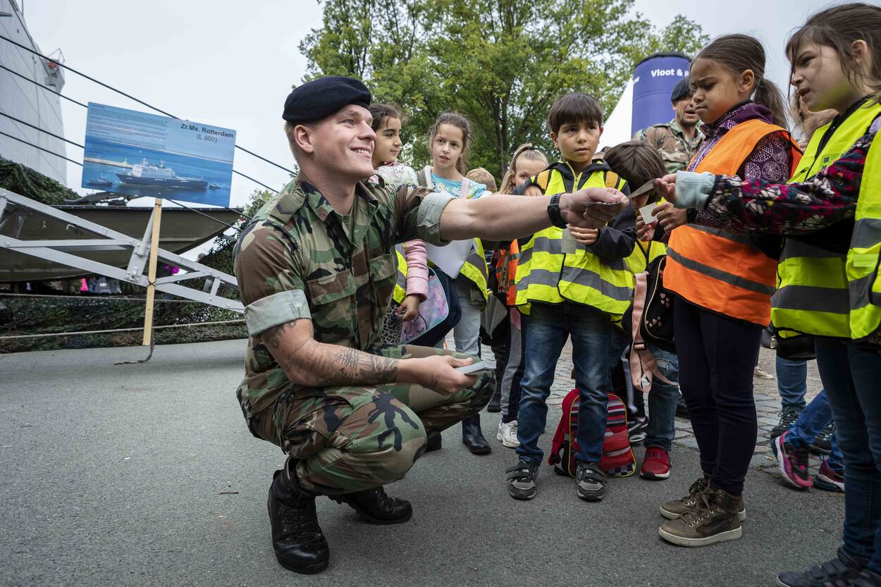 “ODS de Vuurvogel, dat zijn wij!” Van ver hoor je groep 5 van deze Daltonschool uit Spijkenisse al aankomen. Juf Andrea houdt de 7- en 8-jarigen met een aantal klassenouders in het gareel. Er is zoveel te zien op de kade. Een politiehond, duikers, koekjes van marinebakker Anna. Het houdt niet op. Bij de enorme beach armoured recovery vehicle(BARV) krijgt de club een demonstratie. De kinderen doen een stapje naar achter als de 650 PK zware motor grommend start. Het bezoek aan de Wereldhavendagen is er een uit een serie van leerzame uitstapjes. In plaats van een schoolreisje gaan de leerlingen nu meerdere keren per jaar op stap.