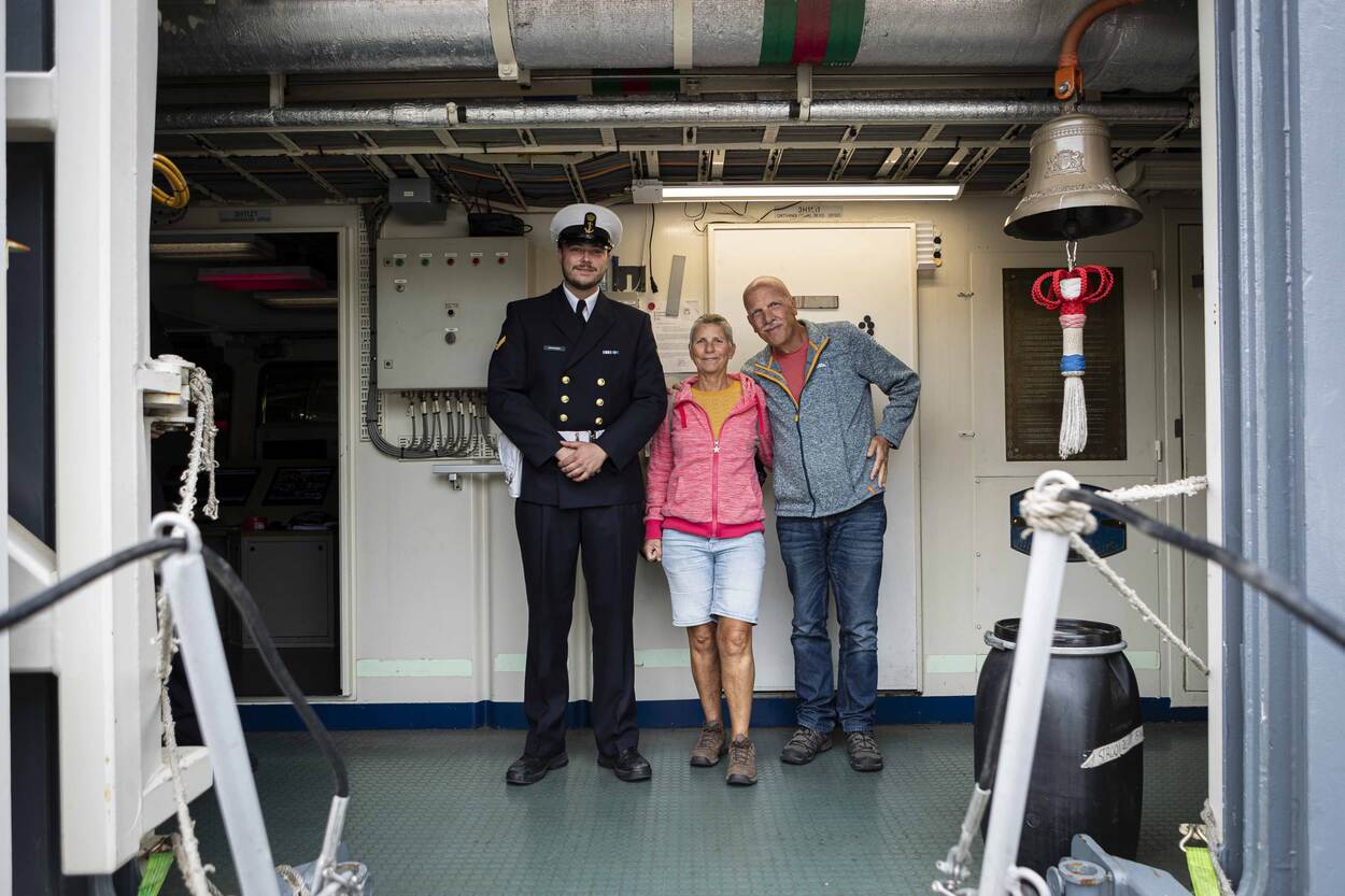 Charles en Gerda Verdoes brengen een bezoek aan Zr.Ms. Rotterdam waar hun zoon Erik als kwartiermeester op vaart. Hij is een dag vrij, maar de wacht wil best met zijn ouders op de foto. Trots is wat Gerda voelt als ze het schip ziet. Maanden is Erik soms van huis. “Voor mij zou het niks zijn”, zegt ze. “Maar dat is ook iets wat je doet als je jong bent”. Vader Charles is geen marineman, maar mooi vindt hij het wel. Niet zo gek ook, als je weet dat het gezin uit Katwijk aan Zee komt. De geur van de zee is daar nooit ver weg.