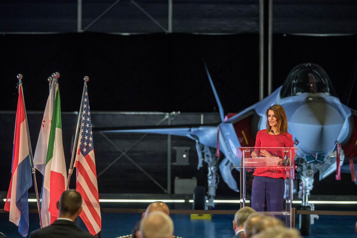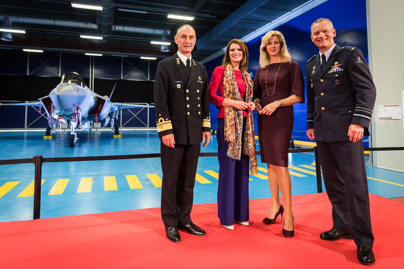 Naast diverse hoogwaardigheidsbekleders uit het gastland en de Verenigde Staten, waren ook de staatssecretarissen aanwezig van Economische Zaken (Mona Keijzer) en Defensie, Barbara Visser. “Dat we hier nu staan geeft me een gevoel van trots en opwinding”, zegt laatstgenoemde. “We zijn al jaren met dit project bezig. Het is de broodnodige vervanging van de F-16 die ons decennia lang goed heeft gediend.”