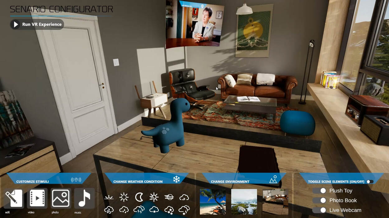 Wanneer de patiënt de bril op zet, zit hij in een rustgevende omgeving zoals een woonkamer of zonnig strand. Op tafel ligt een boek met foto’s die de persoon heeft meegenomen. Het zijn beelden van het traumatische moment, de hotspot of algemene beelden van het uitzendgebied. Over die beelden kun je het volgens Vermetten hebben. "De hotspot is de hinderlaag of het controleverlies toen er iets naars gebeurde. Wat zie je? En wat doet dat met je? De bedoeling van therapie is het verhaal vertelbaar maken. Bij het zien van de beelden in een boek gaat dat makkelijker.”