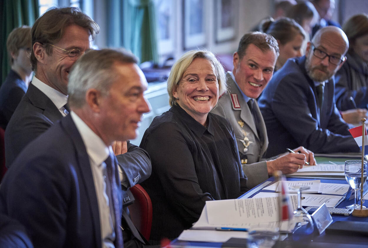 Een brede lach op het gezicht van defensieminister Ank Bijleveld, die met Europese collega’s aanwezig is bij de European Intervention Inititative. Doel van dit initiatief: ‘het versterken van de Europese strategische defensiecultuur en het stimuleren van nadere samenwerking en interoperabiliteit tussen de verschillende krijgsmachten in Europa’. Foto: Phil Nijhuis.