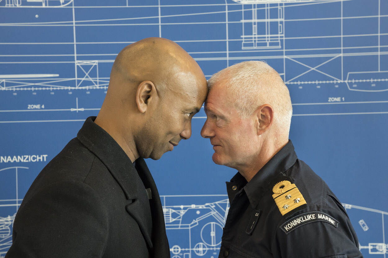 De foto doet misschien anders vermoeden, maar Humberto Tan interviewde onlangs (op een zeer plezierige manier) viceadmiraal Rob Kramer. Hij nam 2 jaar geleden het commando over de zeestrijdkrachten op zich. Foto: John van Helvert.