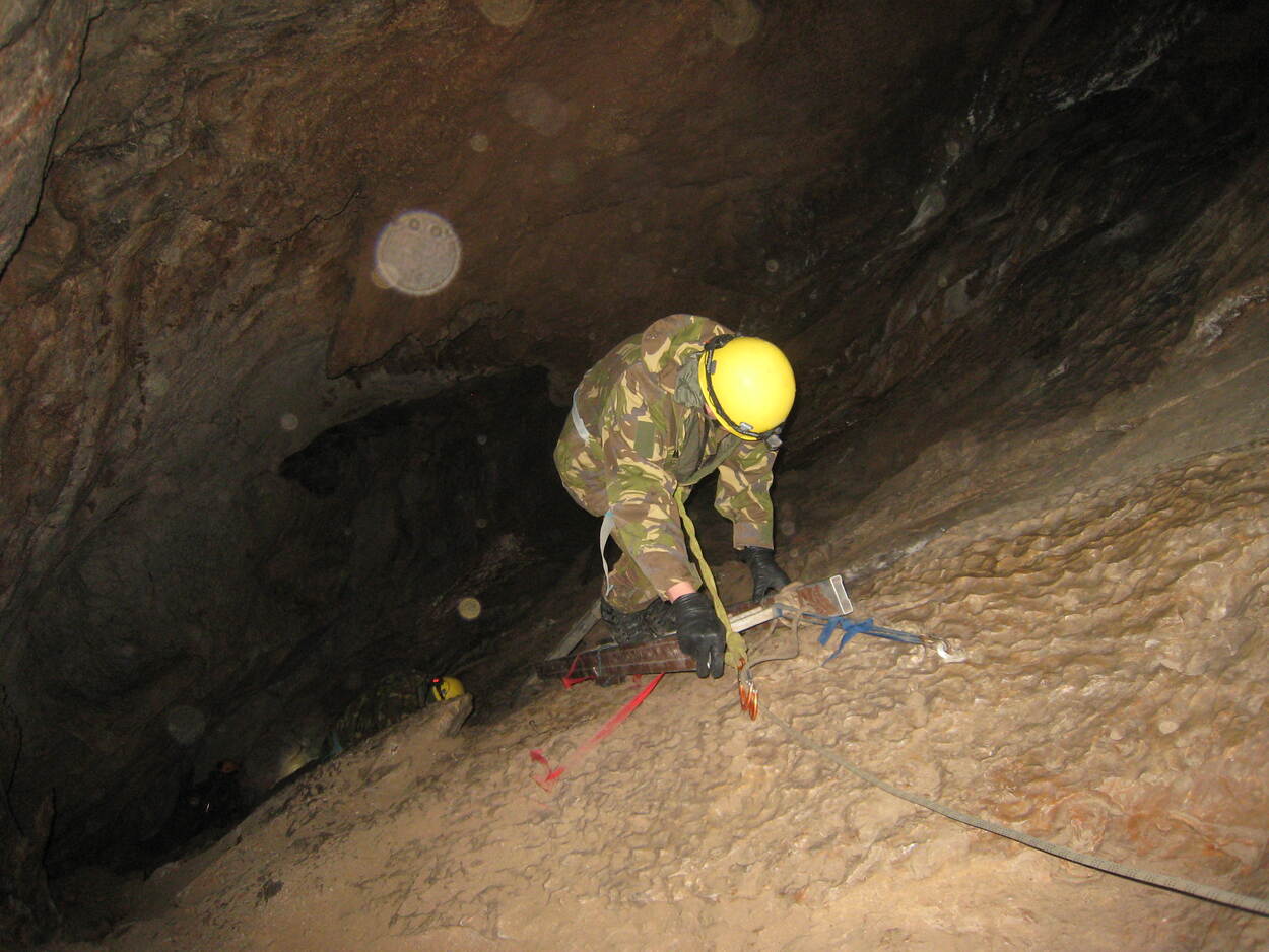 Reserveofficieren van 1CMICo namen onlangs deel aan grensverleggende activiteiten in het Duitse Bad Reichenhall. Een van de uitdagingen betrof een tocht door de Lamprechtshöhle in Oostenrijk. Ofwel urenlang klimmen en klauteren in een koude, vochtige en pikdonker gangenstelsel. Foto: majoor Leen van der Wiel.