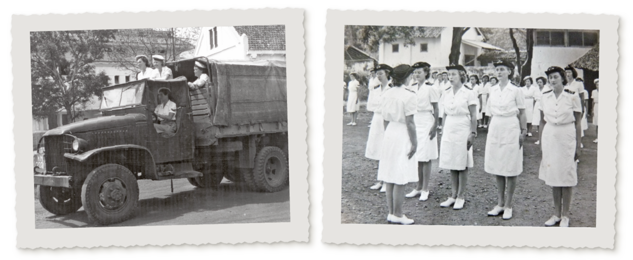 Op 8 november 1946 ben ik met de KLM vertrokken. Eenmaal in Batavia kwam niemand ons ophalen en later bleek dat ze het codesysteem allang kenden. Ik heb toen 2 jaar lang gewerkt als secretaresse van de stafofficier codedienst. Ik moest bijvoorbeeld de codelijsten maken, namen verzinnen voor de schepen, de havens en de steden. De PTT was namelijk in handen van de Indonesiërs en die mochten niet weten waar onze schepen naartoe gingen.