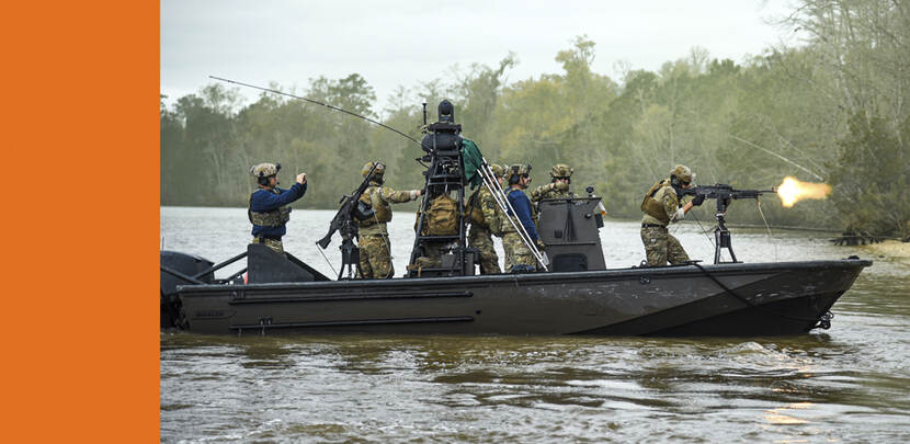 Ze leerden hier met name te opereren vanaf kleine vaartuigen. De training werd verzorgd op het John C. Stennis Space Center in het zuiden van Mississippi. Op de foto vuurt een Nederlandse commando vanuit een bootje op een (voor ons) onzichtbaar doel.