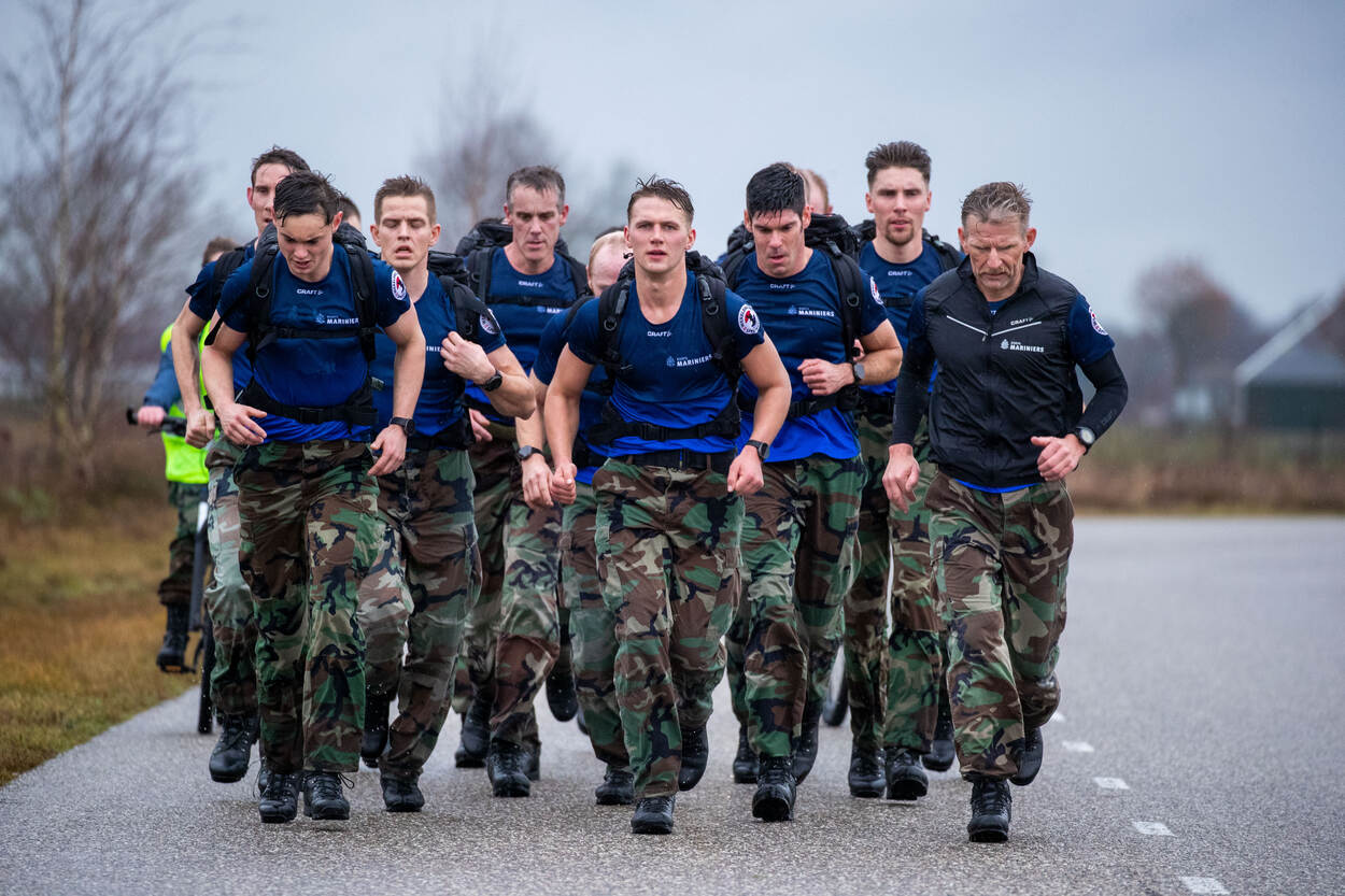 Om geld in te zamelen voor fysiek of mentaal gewonde collega’s gaat een team van het Korps Mariniers op 4 april aanstaande het parcours van de Rotterdam Marathon speedmarsend afleggen. Ze trainen keihard om het record van 4 uur, 16 minuten en 48 seconden – in handen van hun Engelse collega’s - te breken. Sergeant-majoor Jasper Verolme legde een training in Gilze-Rijen vast.
