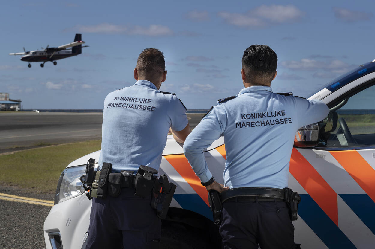 Het Alpha-team van de Koninklijke Marechaussee voert werkzaamheden uit in en rondom de luchthaven van Sint-Maarten. Foto: sergeant Aaron Zwaal