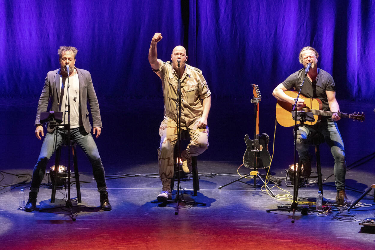 Het Nederlandse team dat in mei weer meedoet aan de Invictus Games, dit keer in Den Haag, bezocht eerder deze maand de theatervoorstelling ‘Operatie Geslaagd’ van Erik Krikke & The 7 Bridges. Foto: sergeant Sjoerd Hilckmann