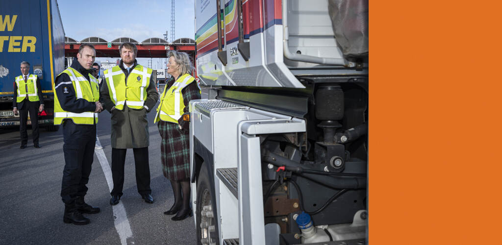 Koning Willem-Alexander heeft eerder deze week de marechausseebrigade Zuid-Holland in Hoek van Holland bezocht. Hier werd hij, samen met staatssecretaris Ankie Broekers-Knol van Justitie en Veiligheid, bijgepraat over maritieme grensbewaking en de problematiek met inklimmers.